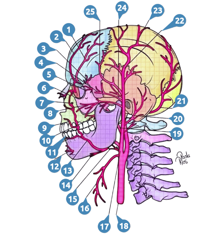 - Arteria Maxilar (irriga estructuras profundas de la cara, incluyendo músculos masticadores y dientes)